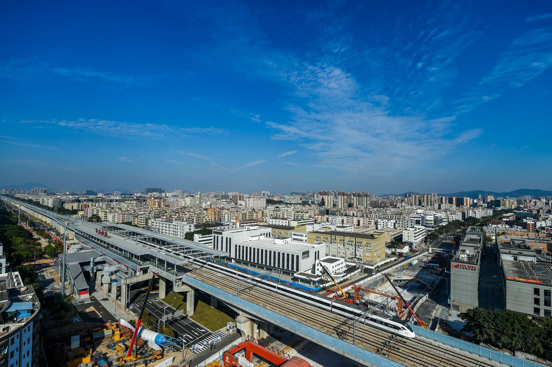 深圳特區(qū)報2019年12月9日訊 近日,穗莞深城際鐵路展開動車組試運行工作。12月8日,記者在福海西站捕捉到試運行動車組的身影。據(jù)了解,穗莞深城際鐵路起點為廣州新塘站,終點為深圳機場站,全長約76公里。深圳境內(nèi)設(shè)4個車站,共計15個車站(高架站10座,地下站5座)及區(qū)間2個隧道。待相關(guān)準(zhǔn)備測試工作結(jié)束后,線路將投入載客運營。(記者 劉羽潔)