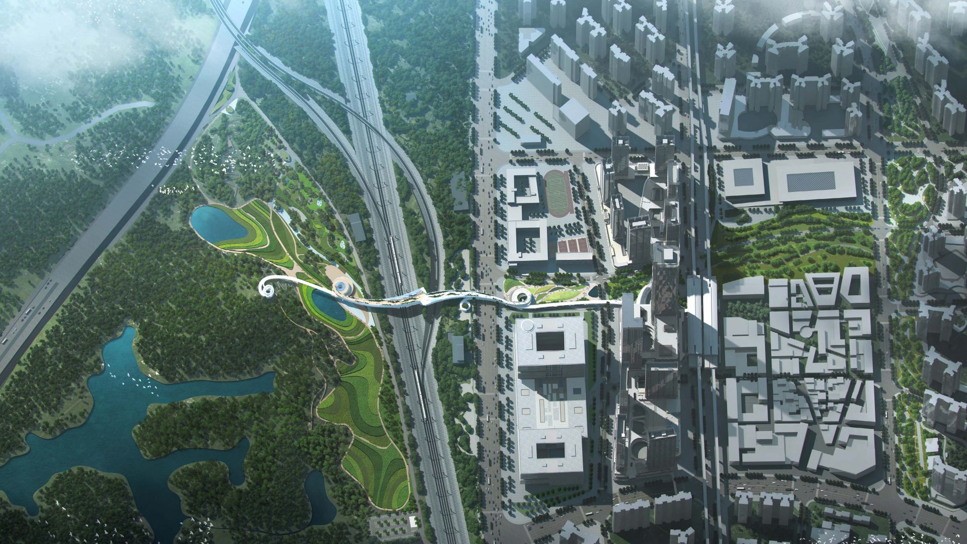 本次深圳北站商務(wù)中心區(qū)紅山跨鐵路段慢行系統(tǒng)規(guī)劃設(shè)計國際競賽規(guī)劃成果將有助于加快解決片區(qū)山城割裂問題,將山水引入城市中來,提升片區(qū)城市品質(zhì),助力深圳北站商務(wù)中心區(qū)建設(shè)具有全球影響力的“國際會客廳”,實現(xiàn)自然與城市“握手”。