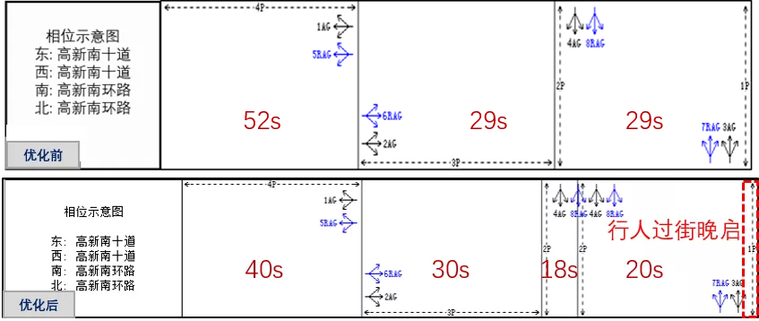 晚高峰優(yōu)化前后配時方案