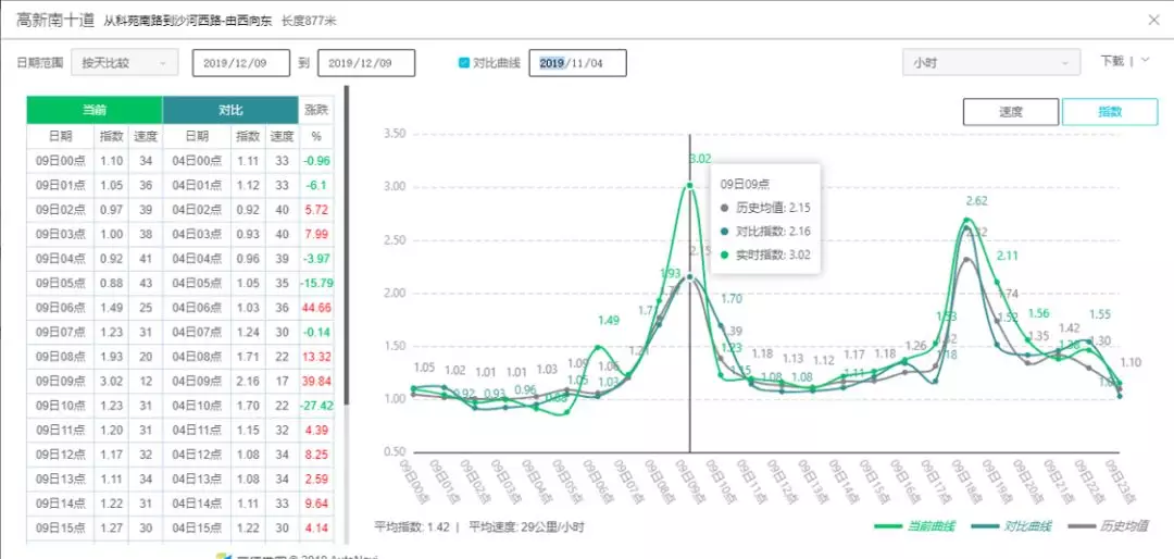 早高峰高新南十道(沙河西路至高新南環(huán)東段)擁堵指數由3.02下降至2.16,下降幅度28.5%