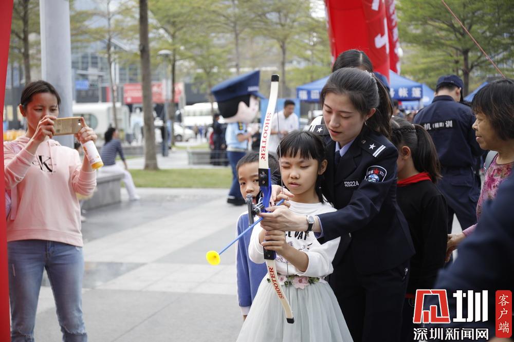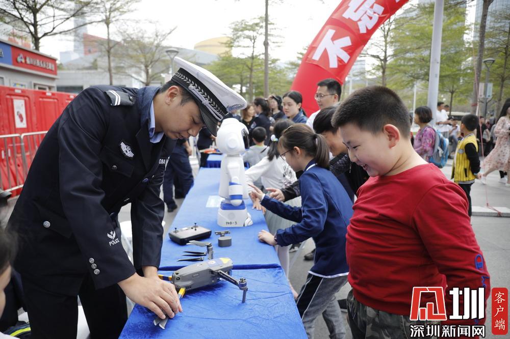 深圳公安民警現(xiàn)場(chǎng)發(fā)放宣傳材料。