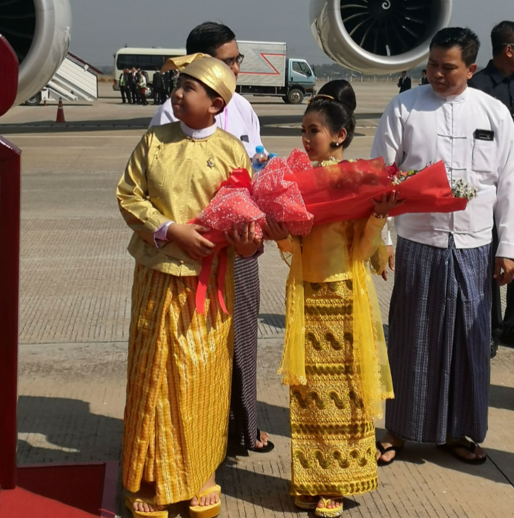 緬甸第一副總統(tǒng)敏瑞率多名內(nèi)閣部長熱情相迎。