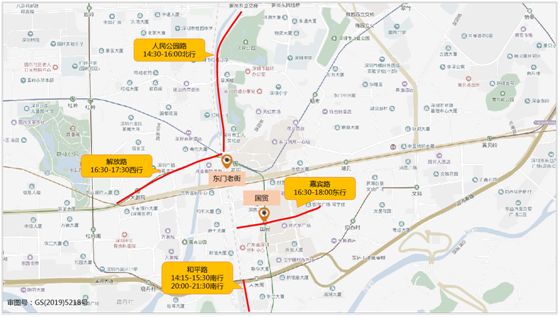 預(yù)計(jì)國貿(mào)-東門老街片區(qū)春節(jié)假期周邊主要擁堵路段有解放路(16:30-17:30西行)、人民公園路(14:30-16:00北行)、嘉賓路(16:30-18:00東行)、和平路(14:30-15:30南行、20:00-21:30南行)。具體分布如下: