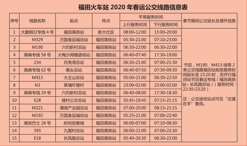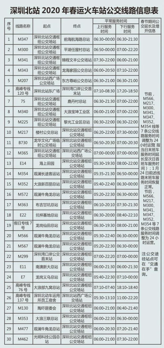 見圳客戶端·深圳新聞網(wǎng)2020年1月20日訊 又將迎來離深高峰,為方便大伙趕高鐵火車,深圳的公交地鐵都開啟最強加班模式,延長服務(wù)時間。很多小伙伴就很關(guān)心,途經(jīng)各大火車站的公交線有哪些?運營的時間是幾點?