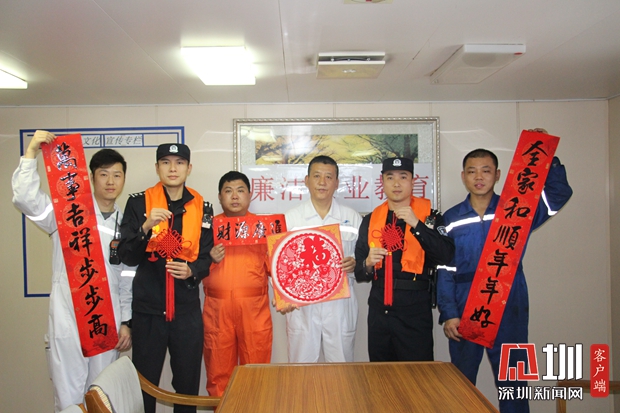 “新年好,祝你新春快樂!”1月19日,汕尾邊檢站民警帶著中國結(jié)、對聯(lián)登上候檢船舶,為即將遠(yuǎn)航印度尼西亞的22名船員致以新春祝福,并與船員一起布置春節(jié)裝飾品。