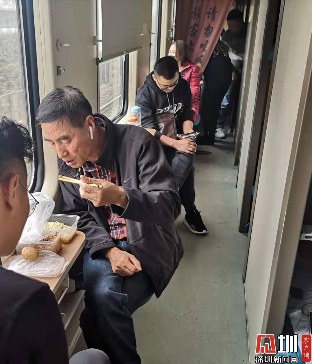 午飯期間,正在吃泡面的老人家是和我一起到終點站的東北人,他和妻子年輕時就來深圳打拼,每一年無論春運的車票多么難搶,他和伴都必須回家過年,他說回到東北,聽著大家說的方言,熱熱鬧鬧的,才覺得這個年過得有意義。