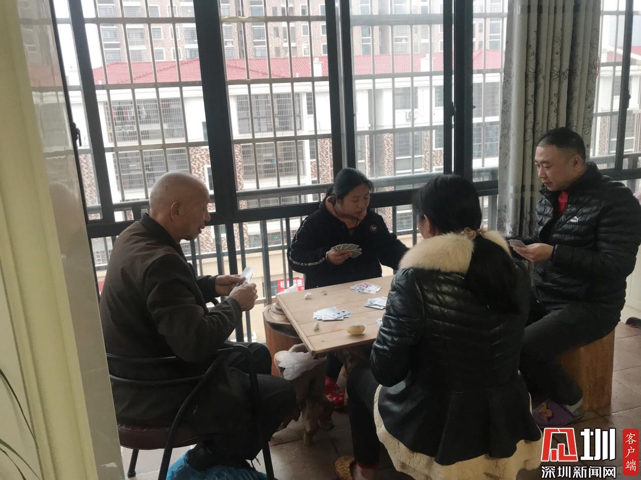 春節(jié),意味著團圓。親戚們從五湖四?;氐郊亦l(xiāng)和親人們團聚,歡度春節(jié)。在玩撲克牌。