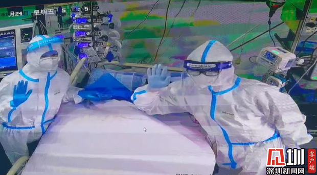 市三院醫(yī)護人員在感染ICU和大家打招呼,感謝市民朋友的關心和愛護。