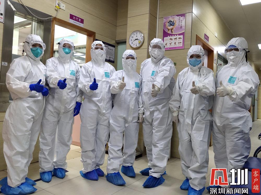 發(fā)熱門(mén)診工作人員相互鼓勵(lì)。