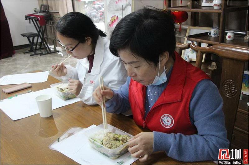 中午12點(diǎn),吳麗回到社區(qū)工作站用餐。