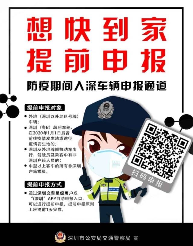 深圳交警提示,預計返深車流將逐漸增大,為了更快速的通過檢疫點,建議即將返深的車主和廣大市民提前通過網(wǎng)上進行申報。