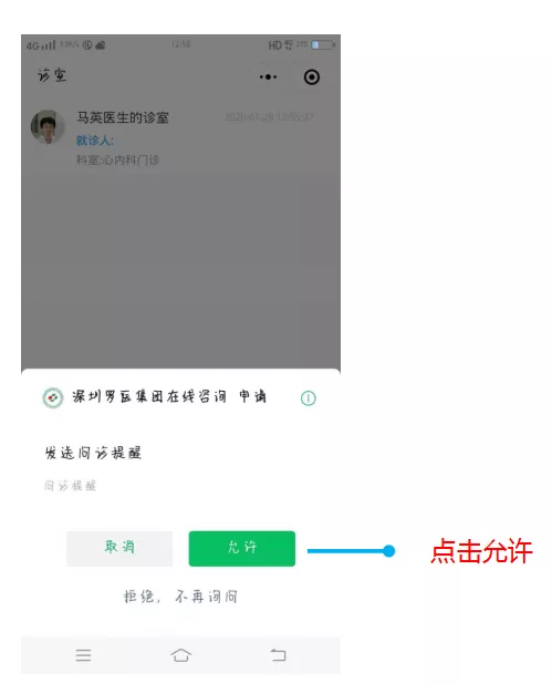 首次進入診室,需要授權(quán)發(fā)送問診提醒