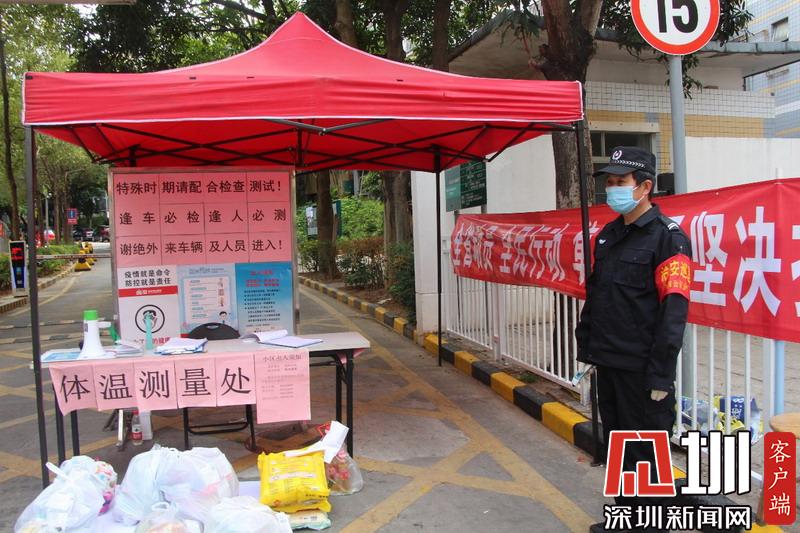 福田梅山苑小區(qū)門口設(shè)有體溫測量處。