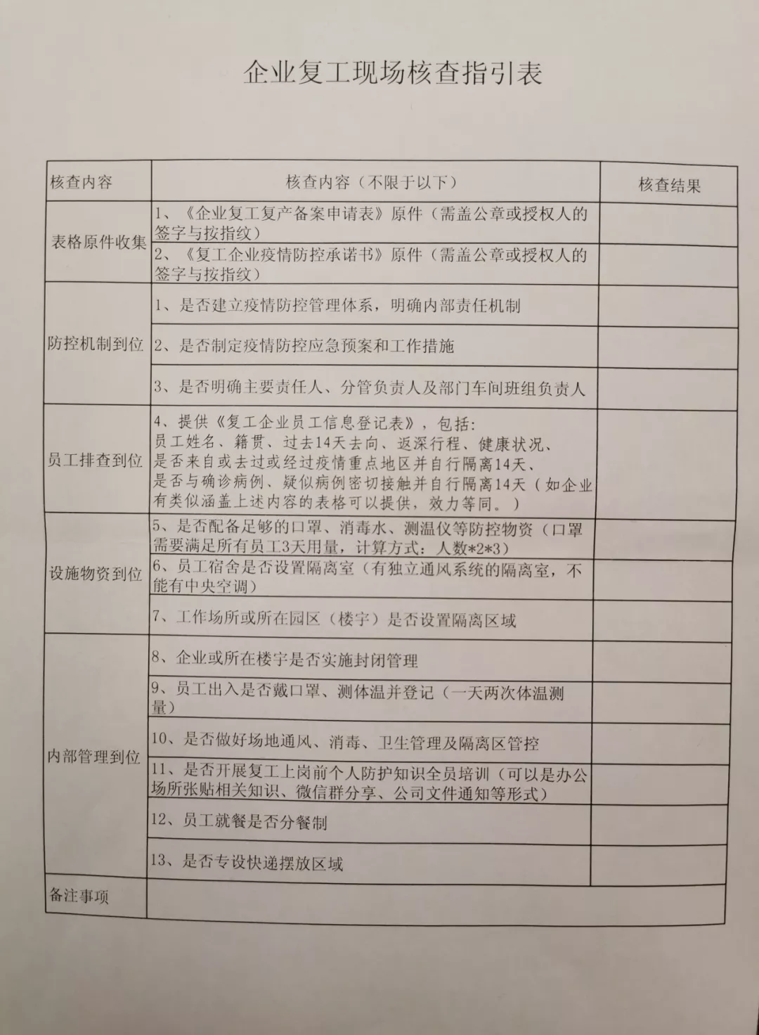 企業(yè)復(fù)工現(xiàn)場核查指引表。新華社記者孫飛2月7日攝