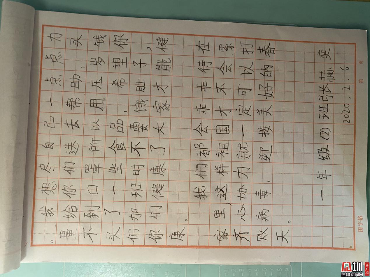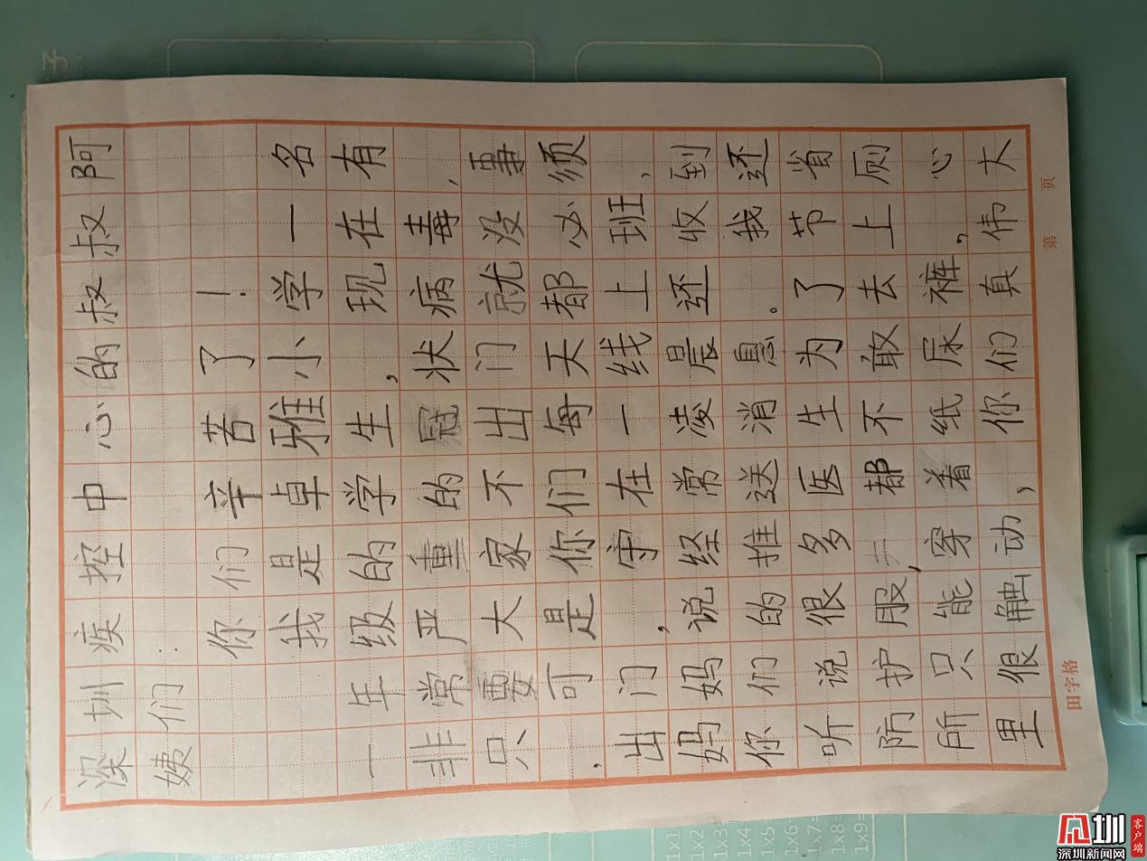 張赫奕小朋友寫(xiě)給深圳疾控叔叔阿姨們的慰問(wèn)信