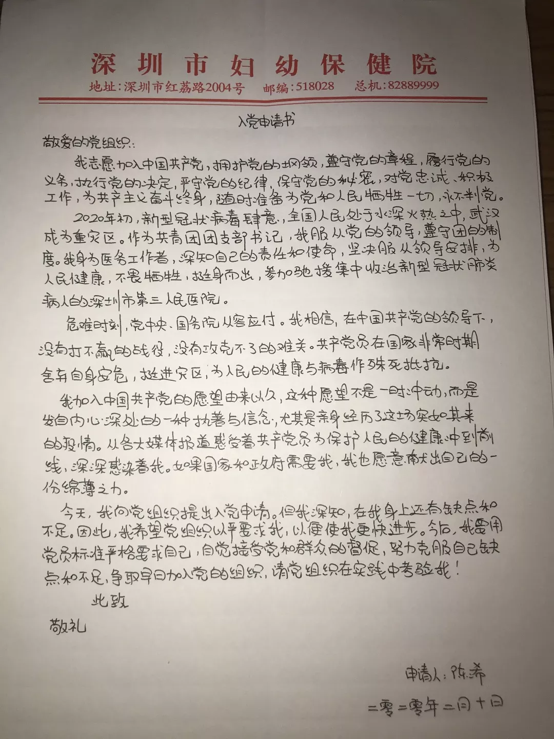 來自戰(zhàn)疫前線的入黨申請(qǐng)書