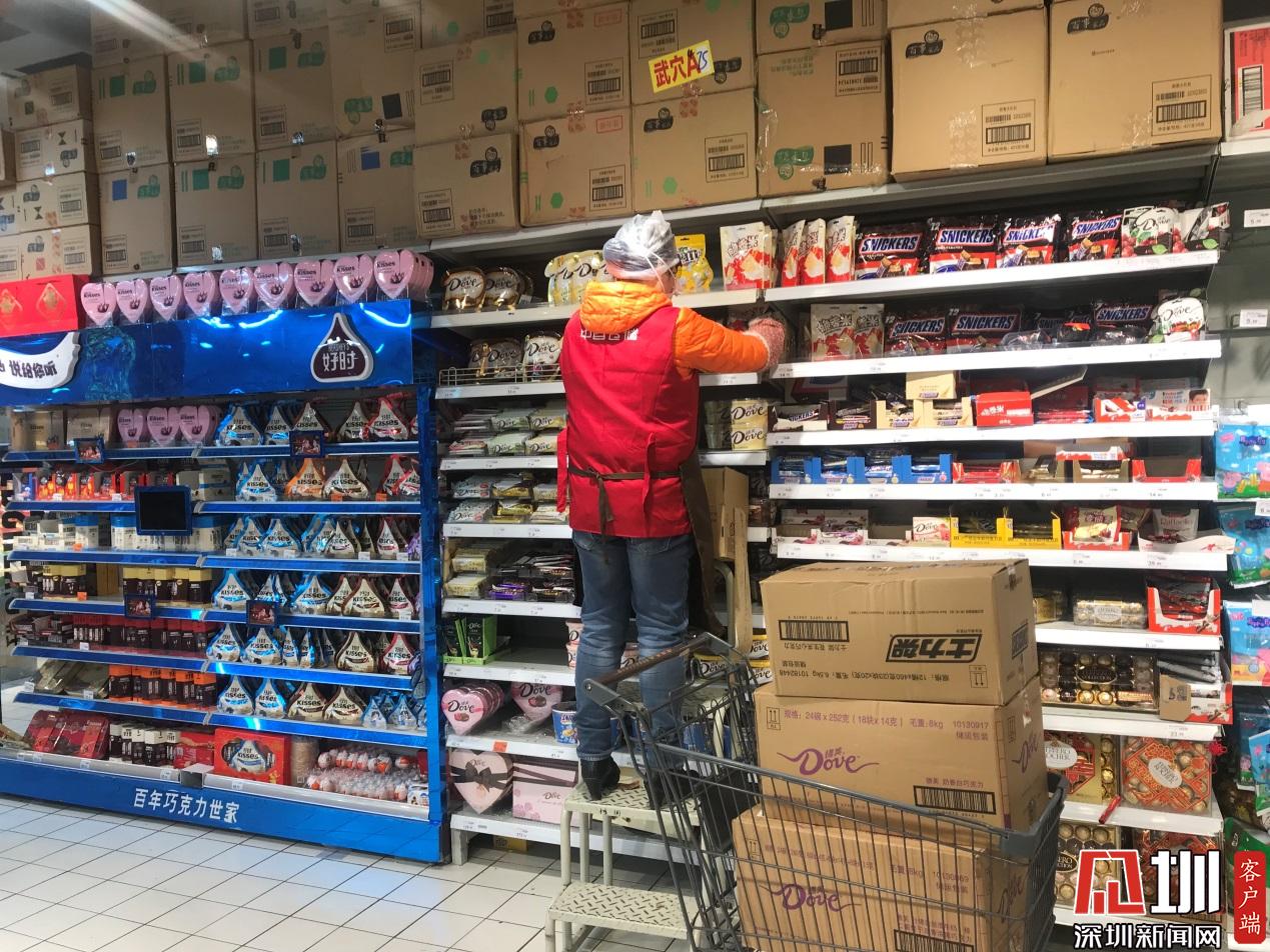 中百倉儲工作人員正在上架商品。