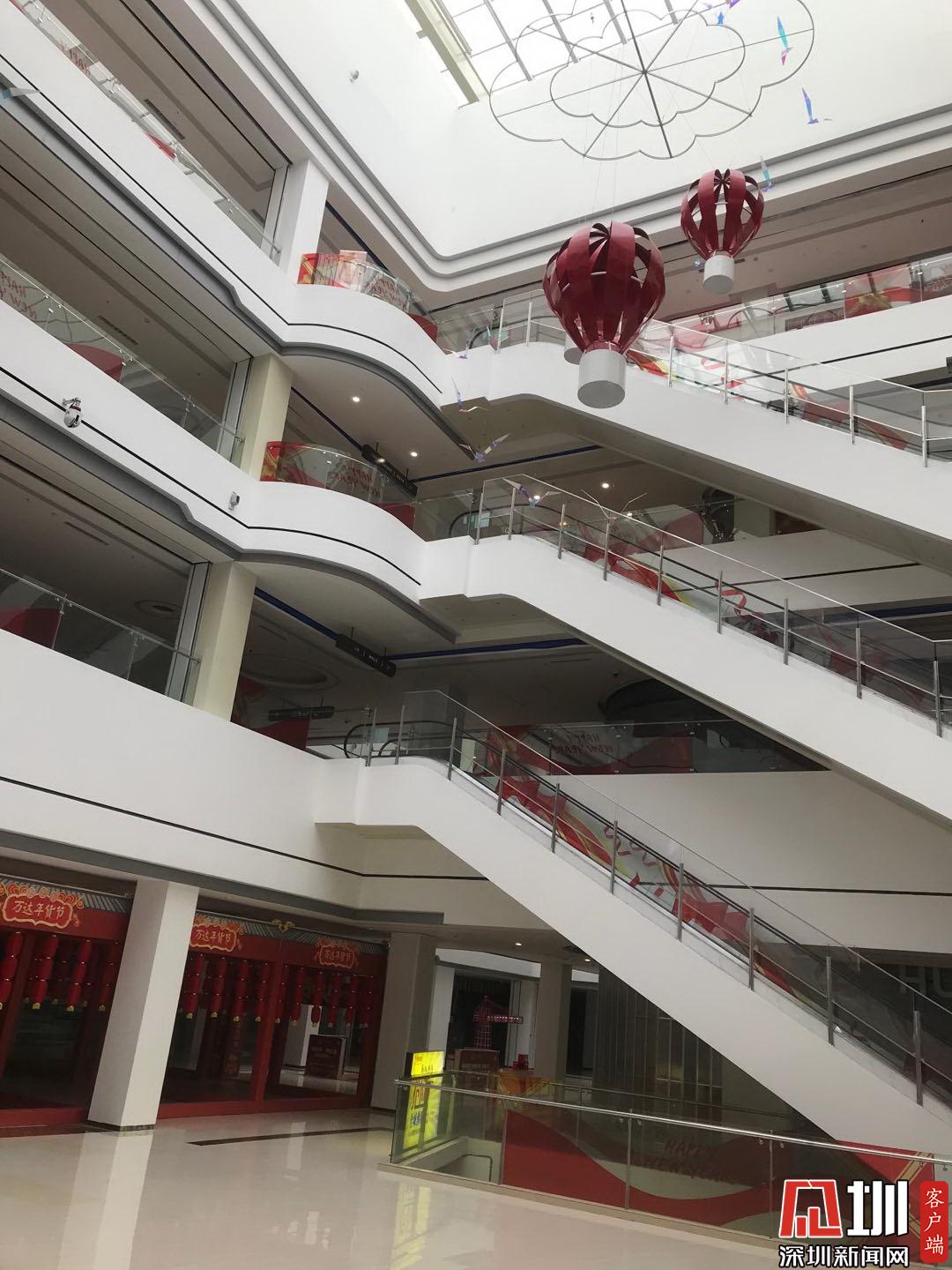 萬達(dá)廣場(chǎng)四層的商場(chǎng)里只有超市在營業(yè)。