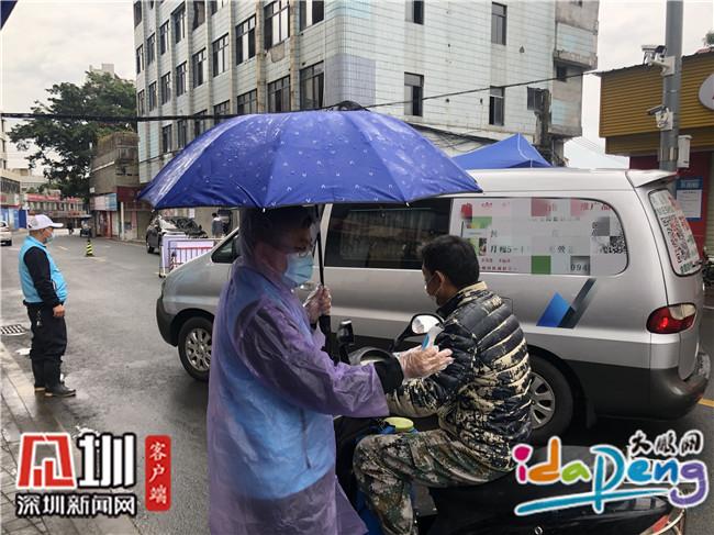 “你好,請留步,麻煩先測下體溫?!痹诖簌i新區(qū)葵涌辦事處的63個檢測點,身著雨衣的工作人員仍堅守在防疫一線,對來往的行人進行排查。(見圳客戶端、深圳新聞網(wǎng)記者 黎陽 李小輝 通訊員 張莉)