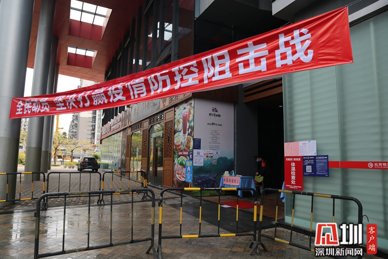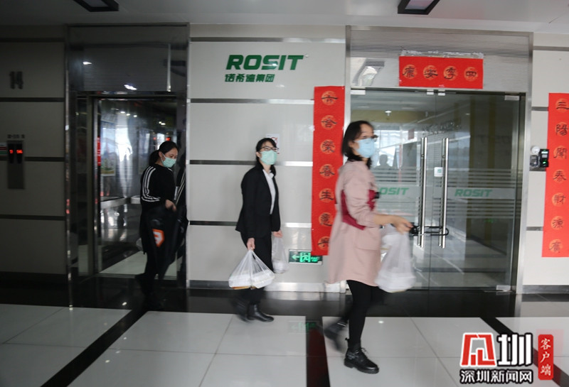 進(jìn)大門,登記信息、測(cè)體溫,才放通行,出門還要再測(cè)體溫;電梯間備有專門的抽紙,電梯外按鈕由保鮮膜隔開;大部分通道和出入口已經(jīng)封閉,大門上張貼著關(guān)于疫情的提示;疫情防控知識(shí)的海報(bào)隨處可見;鮮紅的防疫宣傳條幅十分打眼;進(jìn)出人人佩戴口罩;園區(qū)內(nèi)的龍崗區(qū)熟食中心大門緊閉;中午時(shí)分不少企業(yè)員工提著打包的食物回公司;不時(shí)有雙手拎滿外賣、帶著口罩和防護(hù)帽的送餐人員在園區(qū)內(nèi)快步行走……這些都是2月14日上午記者在龍崗天安數(shù)碼城看到的直觀印象。