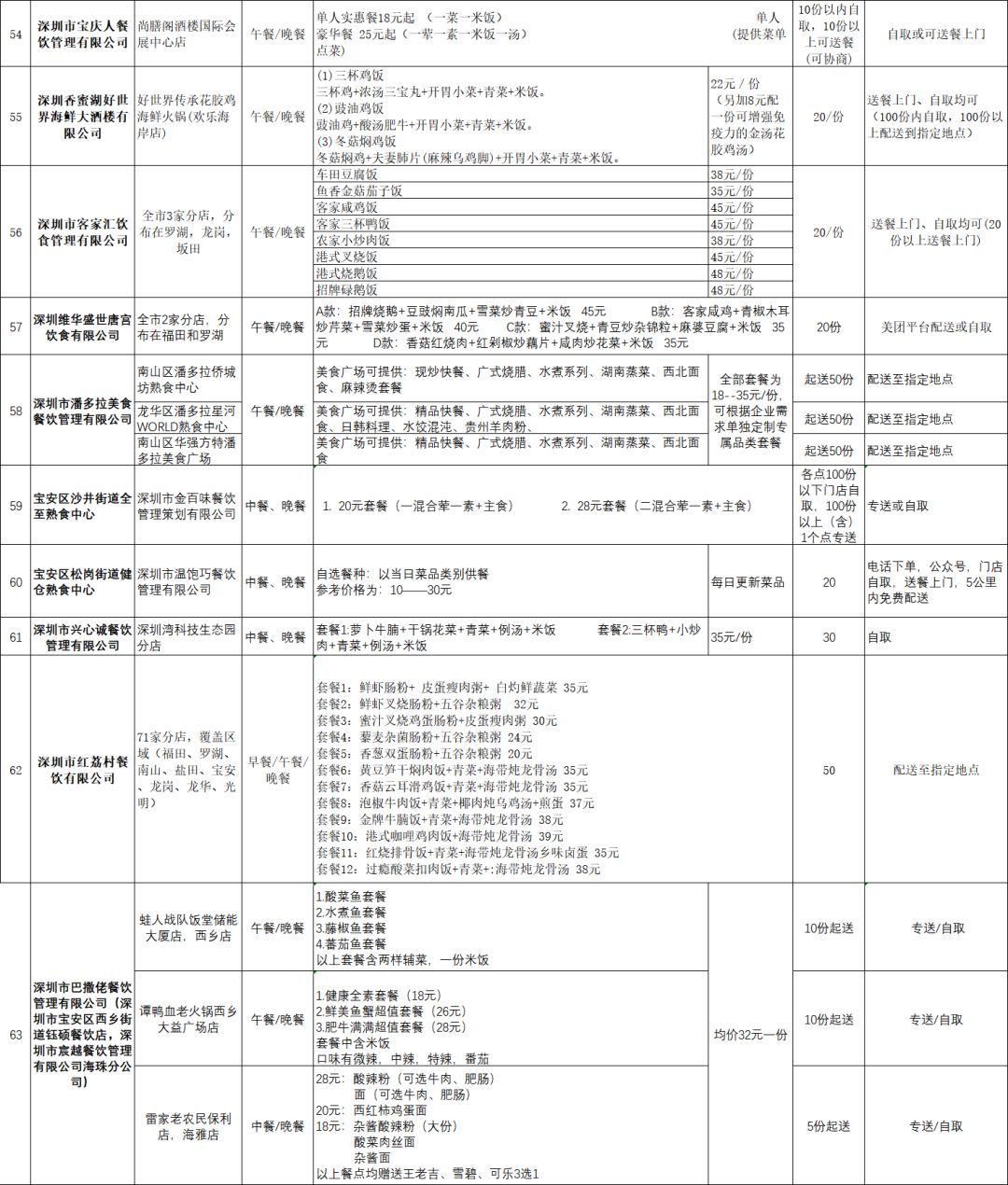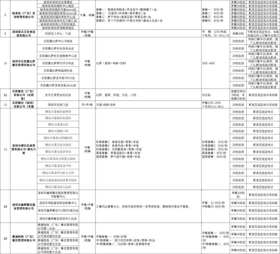 復(fù)工吃飯難?深圳公布79家可提供配送服務(wù)餐飲企業(yè)!附最全名單