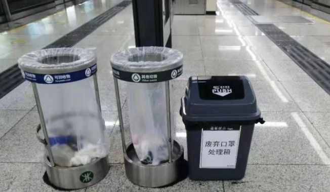 深圳地鐵設(shè)置廢棄口罩回收桶,在所轄7條線路的200多個車站共投放547個專用垃圾桶,用于回收廢棄口罩等各類防護用品。