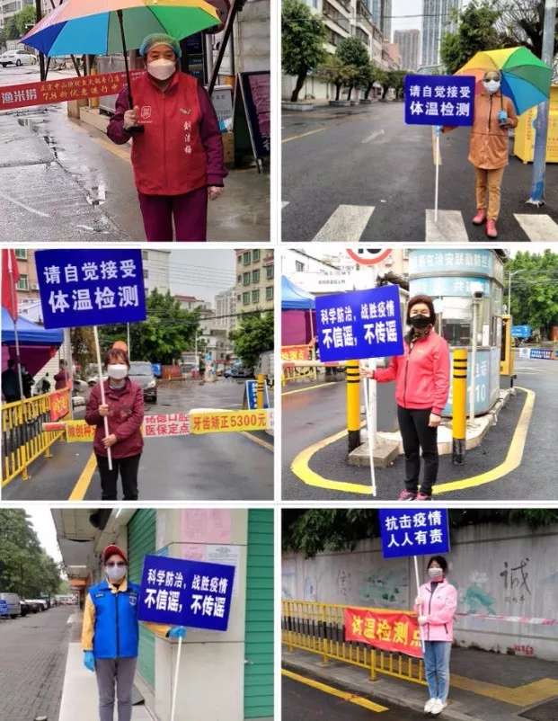 這支“五老”志愿者組成的“姐妹團(tuán)”,每天忙碌于記錄出入車輛、測(cè)量體溫、勸導(dǎo)群眾、宣傳防疫知識(shí)。隨著近日返深人員的增加,她們的工作量也隨著增大,但她們并沒有覺得累,反而充滿了干勁,忙得不可開交。
