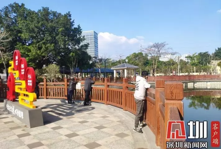 在光明區(qū)塘家公園,每隔一小段距離,就有零星幾個(gè)當(dāng)?shù)氐娜罕?,在公園的池塘邊觀賞風(fēng)景,散散心,均有佩戴口罩。