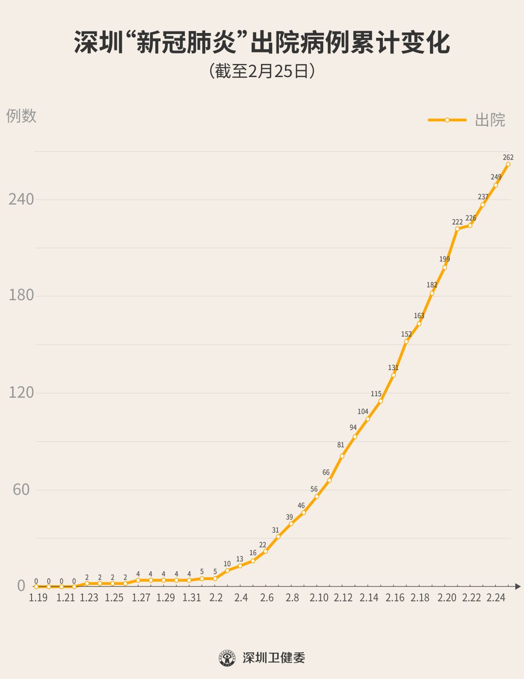 2月25日下午,經(jīng)專(zhuān)家組會(huì)診,深圳有13名新型冠狀病毒肺炎確診患者出院,累計(jì)達(dá)262人,連續(xù)23天有人出院。