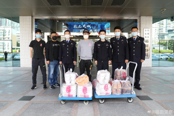 2月26日上午,一愛心餐飲店的工作人員正在準備一批特別的午餐。11時許,該愛心餐飲店的代表帶著熱騰騰的餐食和飲品來到了深圳市公安局福田分局。該愛心餐飲店代表說,“疫情期間,奮戰(zhàn)在一線的民警為這座城市做了很多貢獻,經(jīng)常顧不上吃飯,我們希望能用我們的方式讓一線的執(zhí)勤民警知道,他們是被這個社會尊重的,加油!”福田分局指揮處副處長陳順勛對該企業(yè)的關心和支持表示感謝。福田警方將攜手社會各界的每一份力量,打贏這場疫情防疫戰(zhàn)。