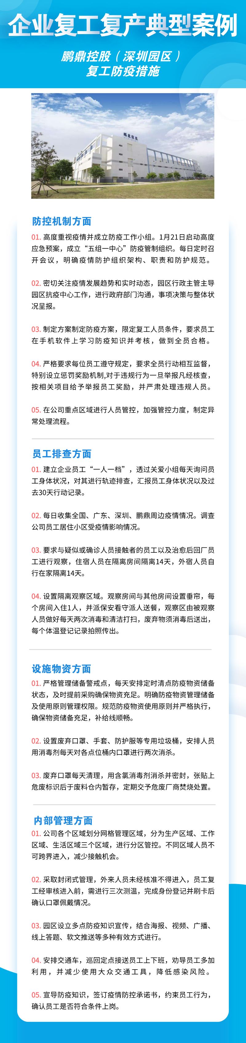 深圳市華為技術(shù)有限公司、聯(lián)想系統(tǒng)集成(深圳)有限公司、深南電路股份有限公司、比亞迪股份有限公司、創(chuàng)維集團股份有限公司等8家公司,從防控機制、員工排查、設(shè)施物資、內(nèi)部管理四個方面來落實疫情防控措施,包括成立企業(yè)疫情防控小組、建立企業(yè)防控機制、提升員工防控意識、劃分隔離區(qū)域、宿舍食堂等區(qū)域消殺等舉措。
