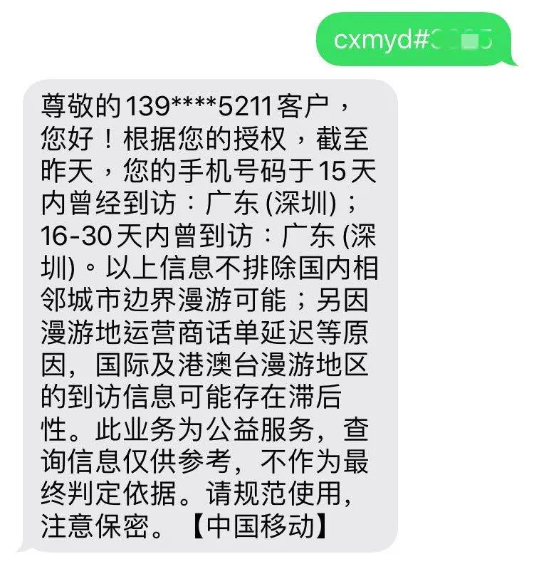 手機(jī)發(fā)送:“ CXMYD#身份證后四位”至10010,查詢近30天的全國(guó)漫游地僖息。便于返工輔助排查。