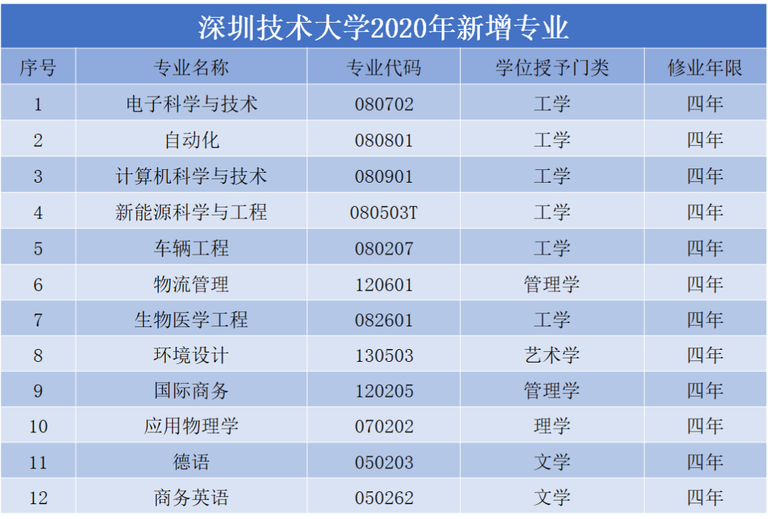 深圳技術(shù)大學(xué)2020年新增專業(yè)