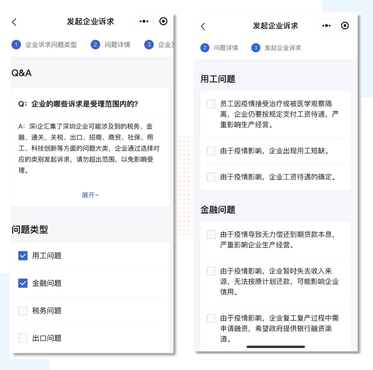 “希望企業(yè)能夠有個(gè)更好、更方便的渠道提交訴求,政府部門能夠更快、更高效的回復(fù)企業(yè),實(shí)現(xiàn)企業(yè)有訴、我必有應(yīng)?!鄙钲谑兄行∑髽I(yè)服務(wù)局副局長呂哲表示,平臺的建立是為了給深圳的企業(yè)提供更精準(zhǔn)、更便捷的服務(wù)。下一步,還將依托平臺對各企業(yè)提交的訴求進(jìn)行數(shù)據(jù)分析匯總,對于企業(yè)共性問題盡快通過出臺政策的方式解決,對于個(gè)性問題努力按照“一企一策”的方式解決,加快幫助企業(yè)度過難關(guān)。