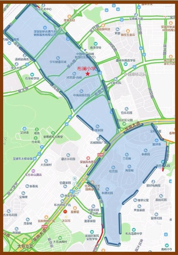 2.南灣學校龍崗大道以南部分。該招生范圍與南灣學校共享。