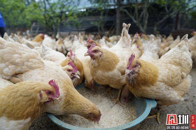 3月11日的清晨,66歲的王子平頂著薄霧,在田西村百香雞孵化養(yǎng)殖基地中,撒下了喂養(yǎng)雞群的百香果玉米等混合飼料。這些雞,已經(jīng)在田西村山坡上散養(yǎng)了超過240天,也就是扶貧產(chǎn)業(yè)農(nóng)產(chǎn)品“百香雞”。這是深圳南山對口扶貧連平縣百香雞孵化養(yǎng)殖基地的一個勞作場景。