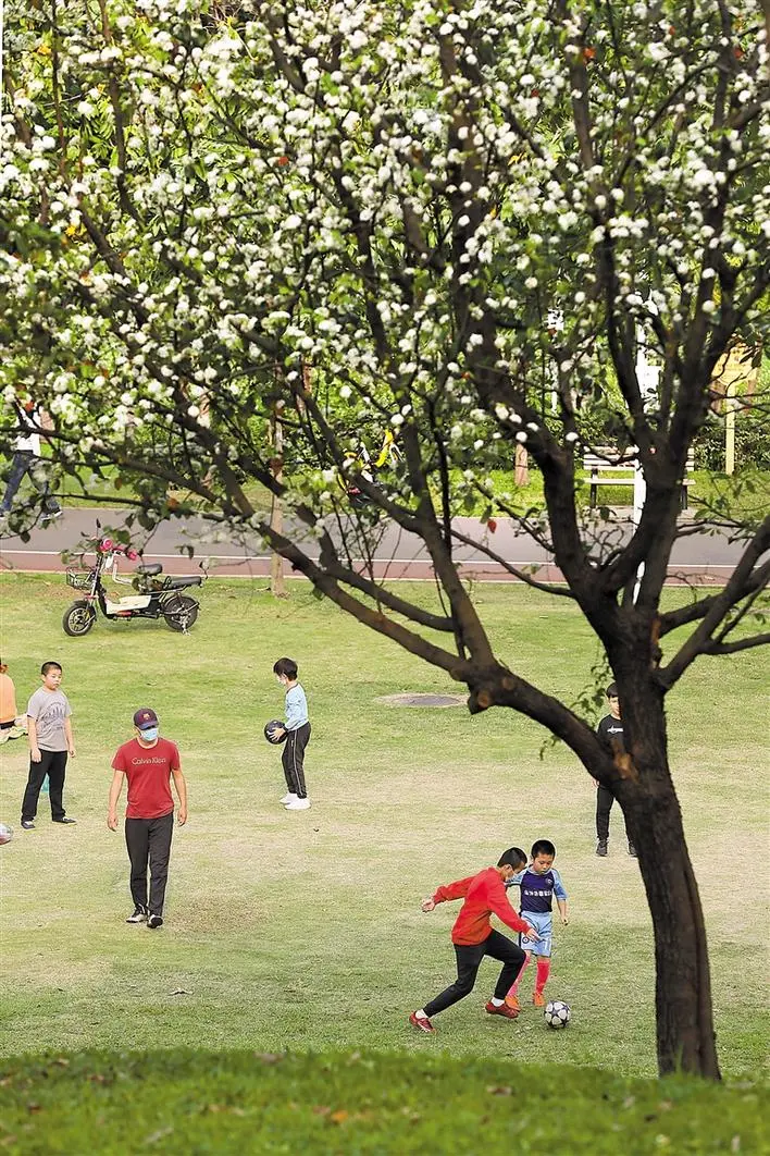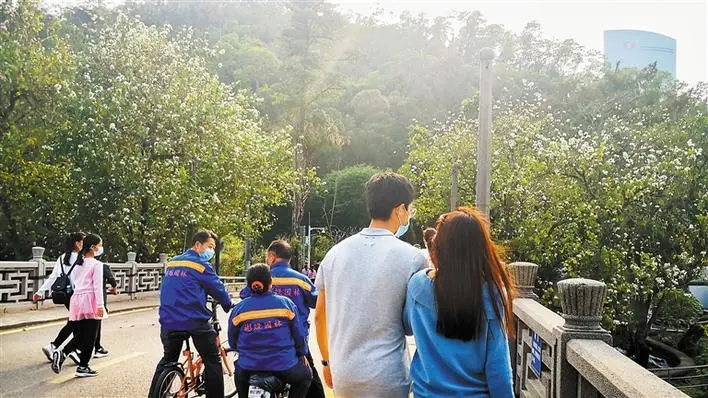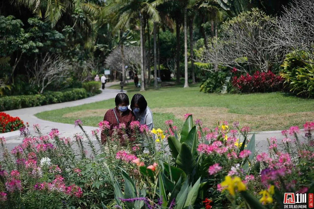 在蓮花山公園,不少市民賞花漫步,仍然戴著口罩,在享受好天氣的同時,也不放松對病毒的警惕。