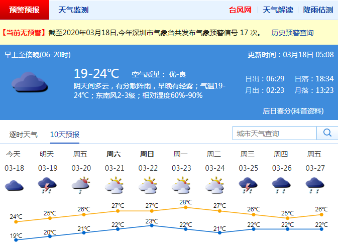 見圳客戶端·深圳新聞網(wǎng)2020年3月18日訊 送走前幾日干爽的天氣,我市將迎來新一波降雨。記者從市氣象局獲悉,受高空小波動(dòng)和低層西南風(fēng)加大影響,預(yù)計(jì)18-19日我市有明顯降雨,其中18日陰天間多云,有分散陣雨,氣溫19-24℃;19日陰天有(雷)陣雨,部分時(shí)間雨勢稍大;20日陣雨轉(zhuǎn)多云,早晚有輕霧或霧;21-24日多云為主,天氣溫暖濕潤。