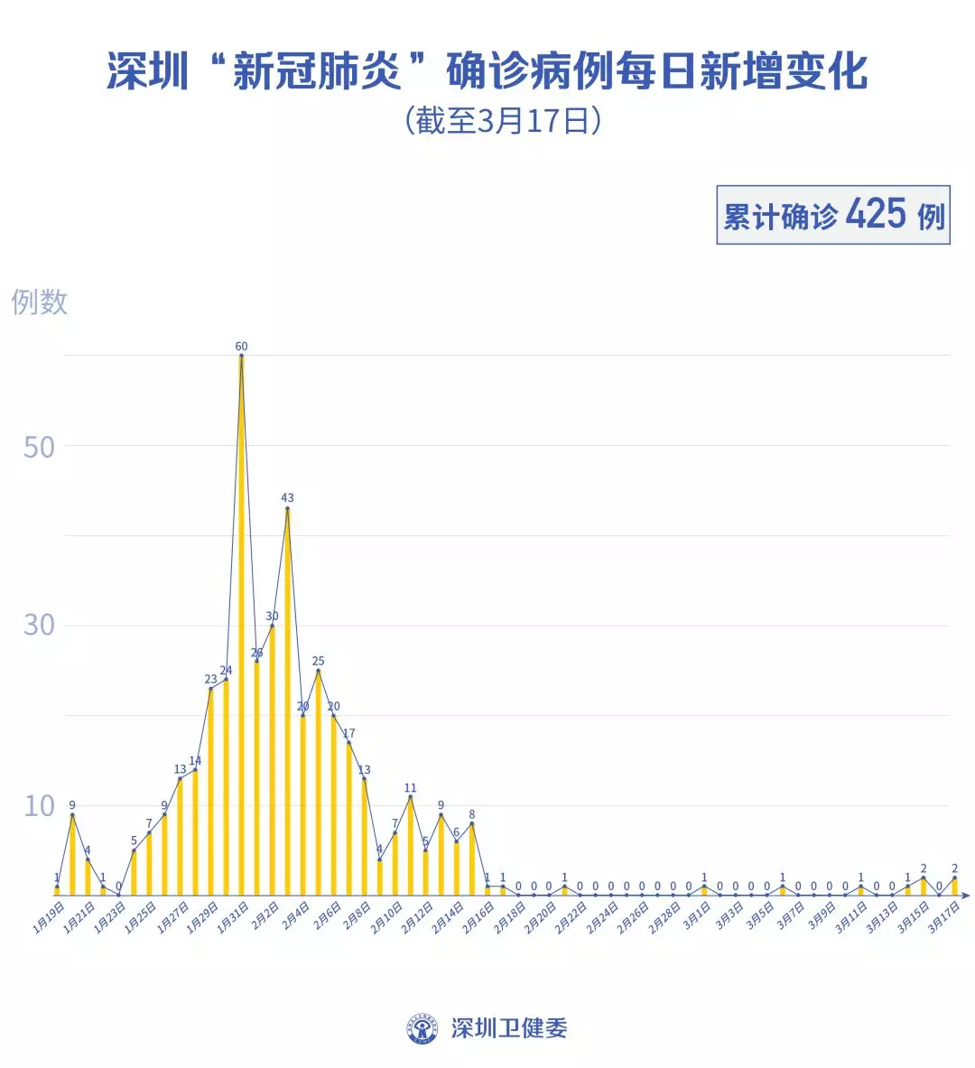截至3月17日24時(shí),深圳累計(jì)報(bào)告“新冠肺炎”病例425例。3月17日當(dāng)天新增2例,出院1例。