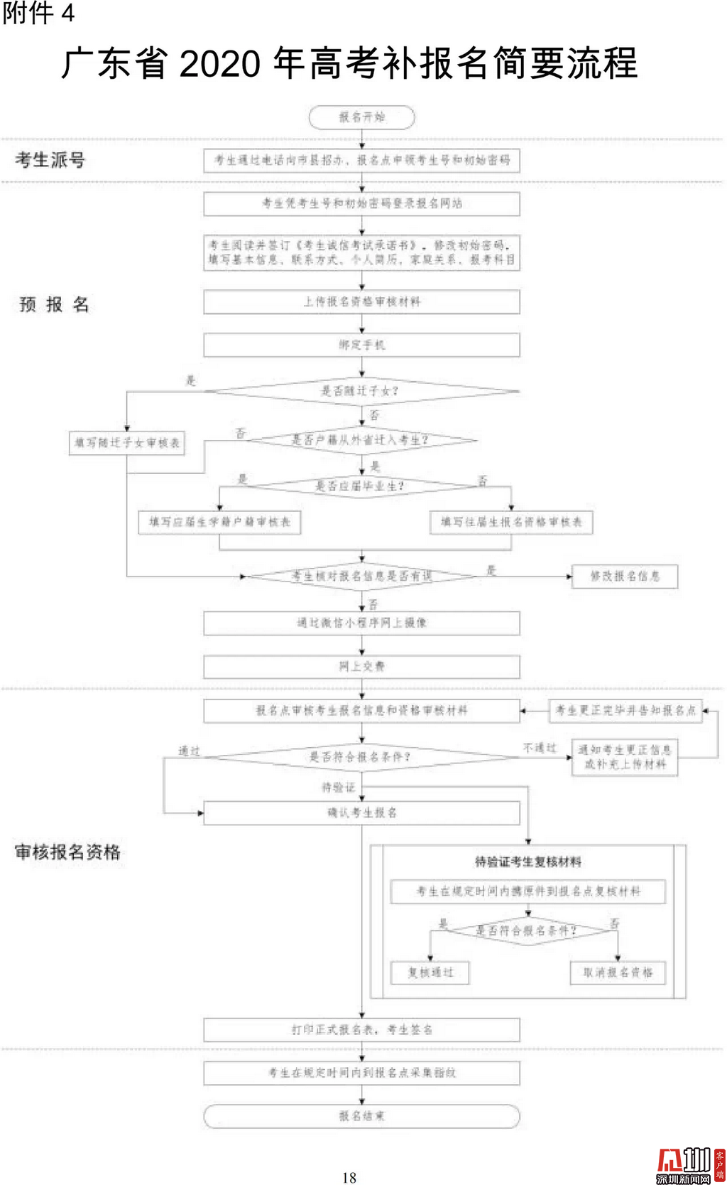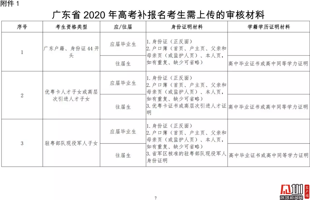 見圳客戶端·深圳新聞網2020年3月19日訊(見圳客戶端、深圳新聞網記者 金洪竹)3月18日,記者從廣東省招生委員會辦公室獲悉,為滿足退伍軍人、運動訓練及武術與民族傳統(tǒng)體育考生、高職院校自主招生考生等符合我省高考條件,因各種原因尚未參加高考報名人員的需求,經研究決定安排一次高考補報名,補報名時間為3月23-26日。同時,為確??忌涂荚嚬ぷ魅藛T的生命安全和身體健康,減少聚集,本次高考補報名采取先線上辦理、后補驗材料的方式進行。