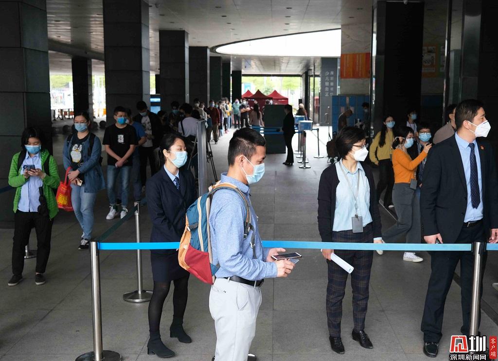 見圳客戶端·深圳新聞網2020年3月24日訊(見圳客戶端、深圳新聞網記者 楊浩翰 張玲)3月24日10點,深圳圖書館有序恢復開放。記者在現場看到,還未到10點,圖書館入口處已經排起長龍。據了解,開放區(qū)域為主館舍一至三樓圖書、報刊借閱區(qū)。恢復開放后,讀者除了可以閱覽和借還圖書、報刊,總服務臺和電話咨詢將正常提供服務,處理讀者證事務、咨詢答疑等;館舍北門的兩臺自助圖書館也將開放,讀者可辦證、繳費和借還圖書。不過,講座、培訓、活動等人員聚集性活動暫不舉辦。