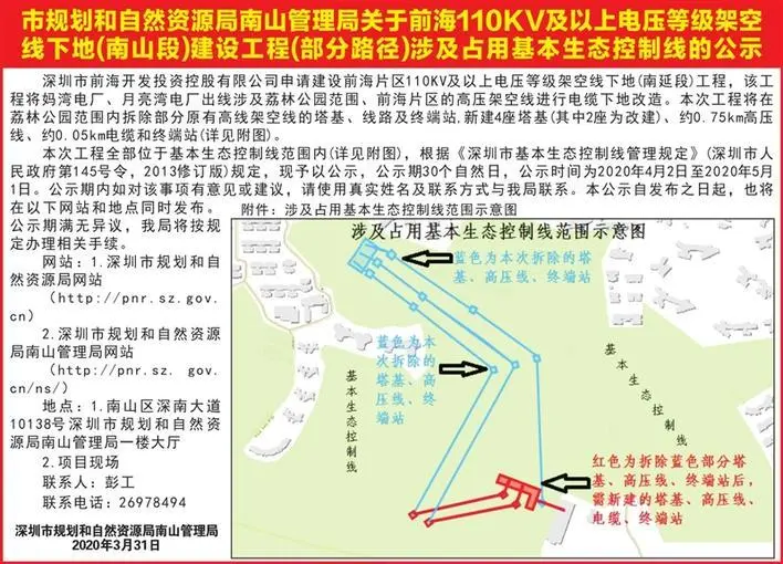 目前這個高壓線下地項目又傳來新進(jìn)展。近日,消息報記者從市規(guī)劃和自然資源局南山管理局獲悉,前海片區(qū)110千伏及以上電壓等級架空線下地(南延段)工程,即將啟動建設(shè),現(xiàn)正公示。