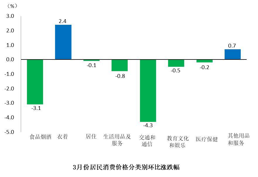 總體來(lái)看,食品價(jià)格環(huán)比下降4.3%,非食品價(jià)格環(huán)比下降0.7%;服務(wù)價(jià)格環(huán)比下降0.9%,消費(fèi)品價(jià)格環(huán)比下降1.9%。
