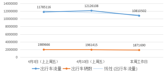 交警部門預(yù)計,今天周五晚高峰,出行車輛的次數(shù)會依然處于高位。經(jīng)對15時至21時全市出行車輛情況統(tǒng)計,4月3日(上上周五)全市出行車流量1178.51萬輛次,出行車輛198.97萬輛;4月10日(上周五)全市出行車流量1212.61萬輛次,出行車輛196.15萬輛。結(jié)合本周工作日全市出行車輛情況,深圳交警預(yù)計4月17日(本周五)全市出行車流量較工作日稍有增加,增加約9.34%,達(dá)1182.97萬輛次。