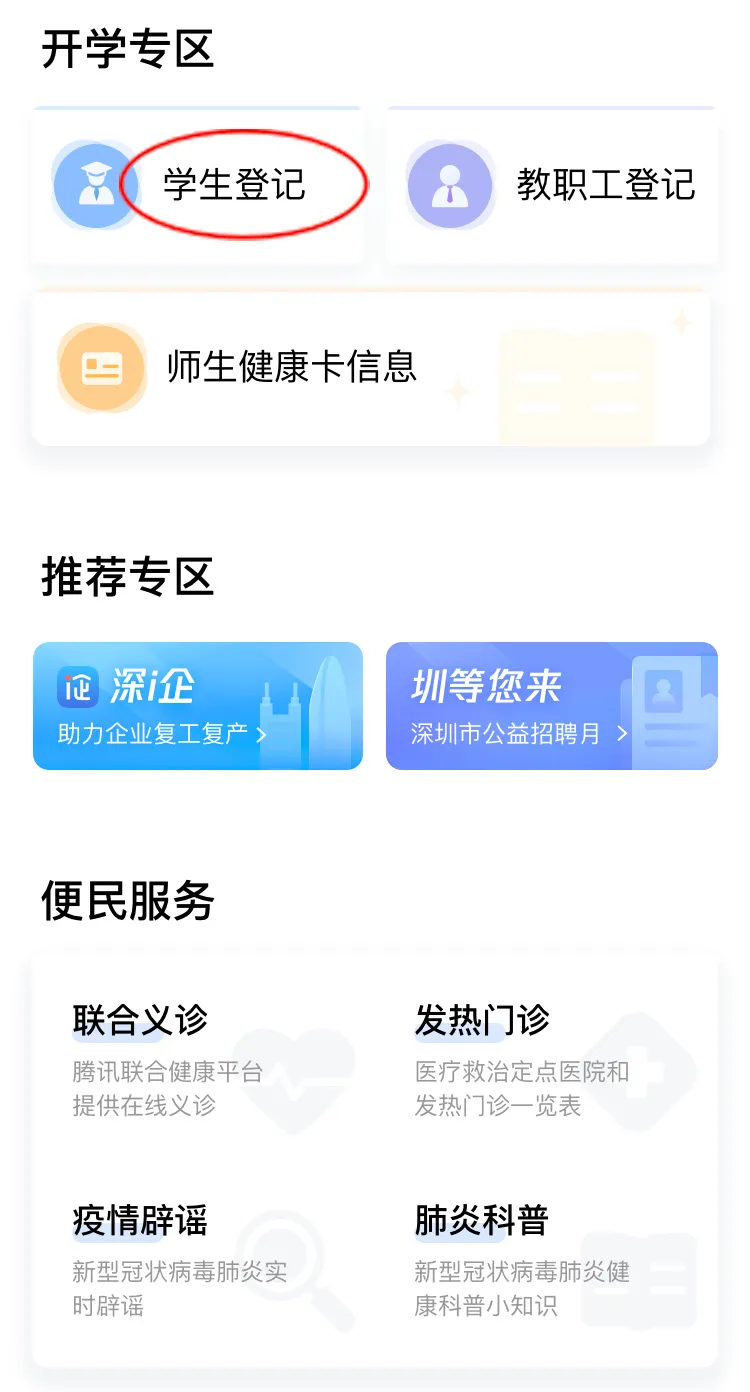 在開學(xué)專區(qū),點(diǎn)擊“學(xué)生登記”進(jìn)行自主申報(bào)和實(shí)名認(rèn)證。