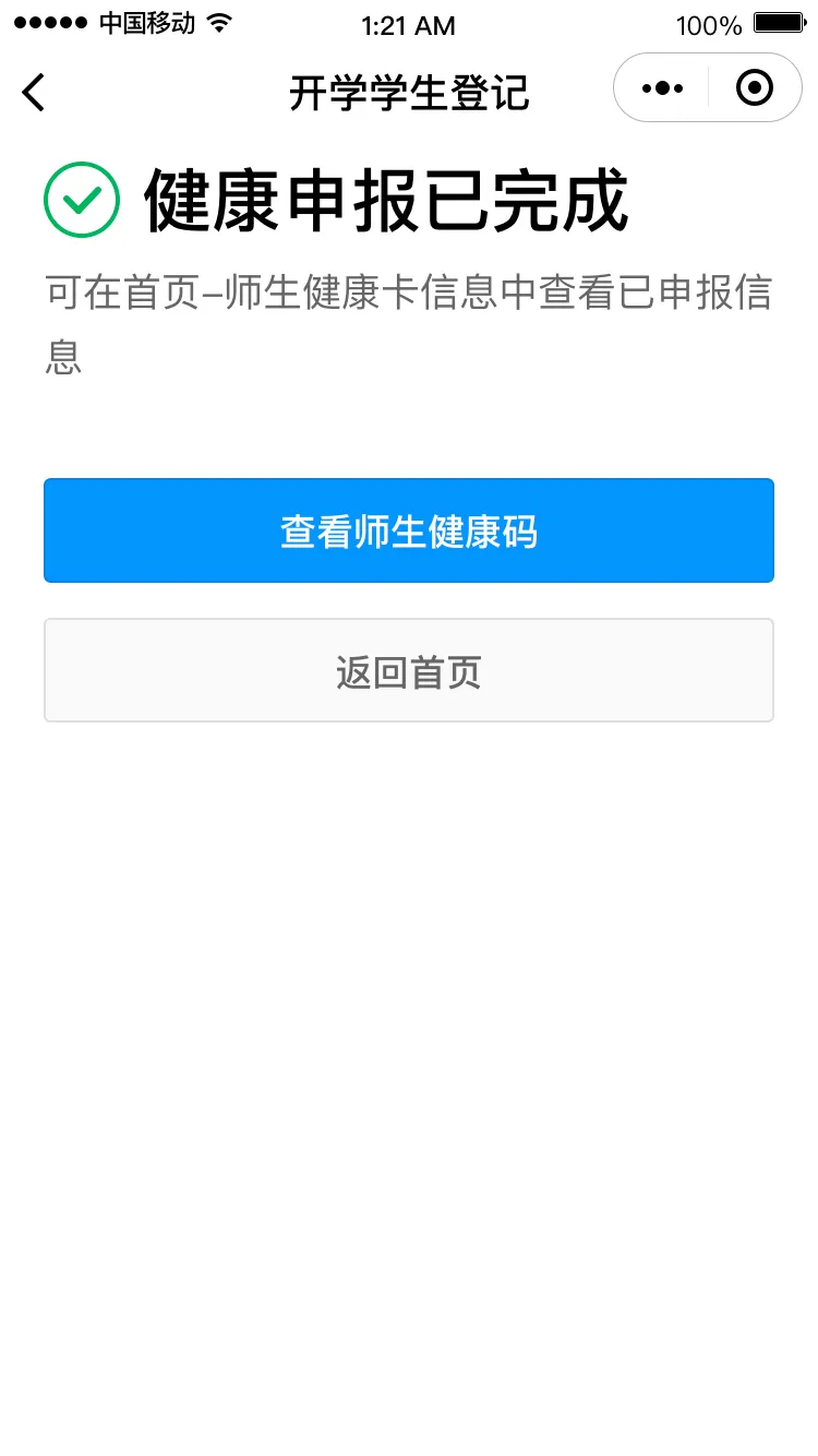 若不符合返校條件,需在符合條件后,點(diǎn)擊“重新生成健康卡”再次申報(bào)。