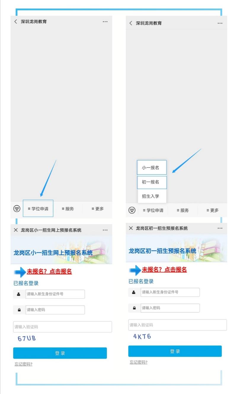 和以往一樣,家長可以登錄龍崗政府在線網(wǎng)站的“龍崗區(qū)教育局基礎教育科”頁面(http://www.lg.gov.cn/bmzz/zs/)進行學位申請報名,不過今年,家長多了一個更加便捷的報名方式,通過關注“深圳龍崗教育” 微信公眾號,在“學位申請”欄目中點擊“小初一報名”,憑適齡兒童、少年身份證號進入,填寫學位申請信息,填報學校志愿。確認信息無誤后直接保存,同時產生申請學位的流水號,即完成網(wǎng)上預報名。