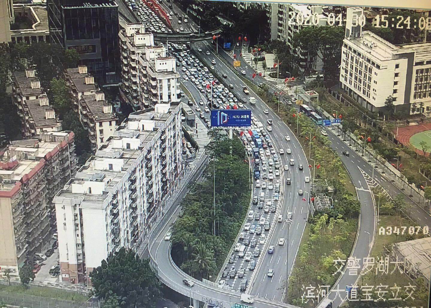 濱河大道是深圳市最先進(jìn)入晚高峰節(jié)奏的道路,15時(shí)30分,濱河大道寶安立交路段西往東方向開(kāi)始出現(xiàn)車(chē)多緩行。車(chē)流量慢慢增多,到18時(shí)許,濱河大道西往東方向發(fā)生嚴(yán)重交通擁堵,從竹子林立交到鹿丹村路段一片“紅燈”。