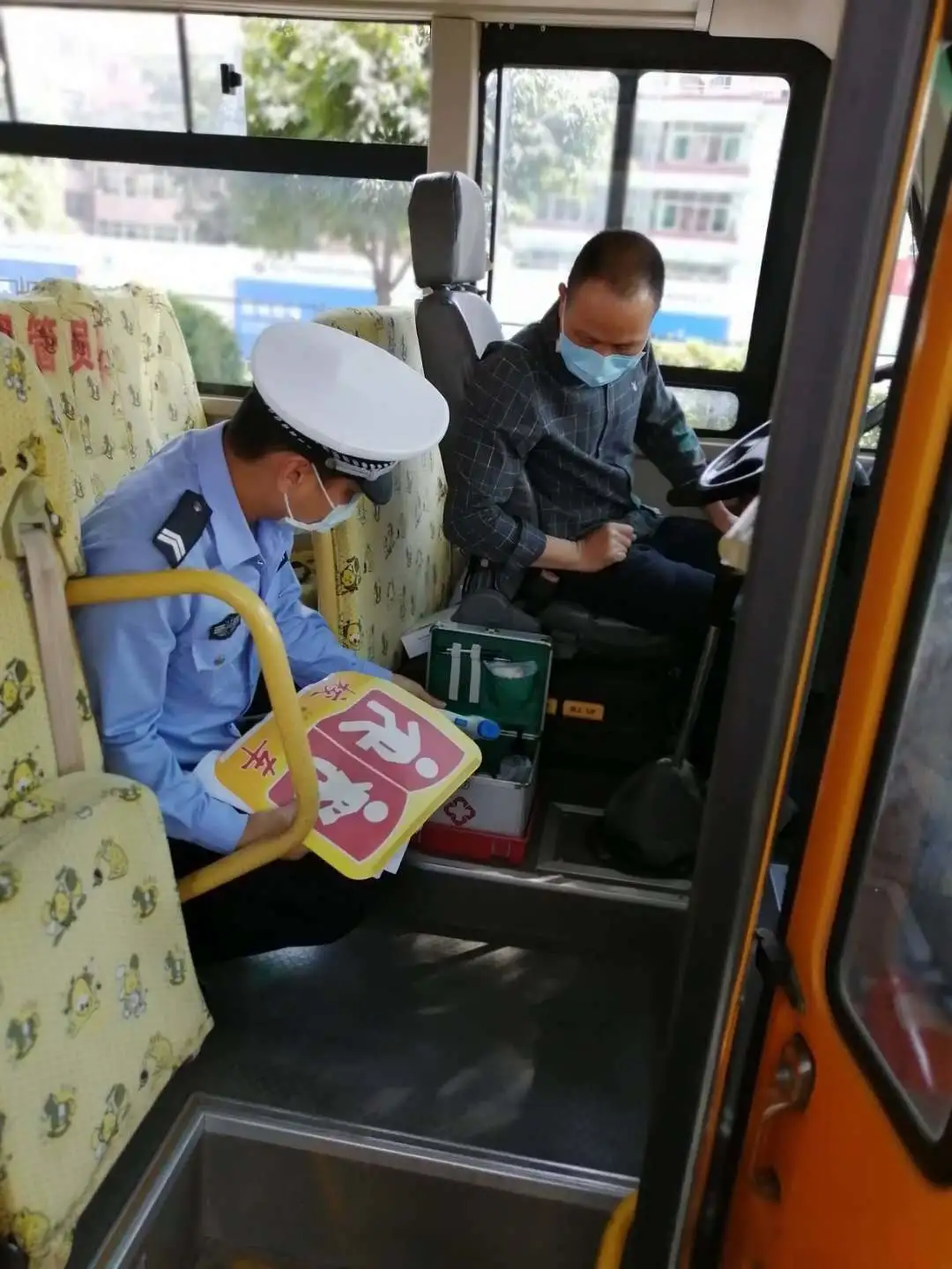 檢查校車車況及安全裝置,是否落實(shí)“每個(gè)座位一條安全帶”、配備行駛記錄功能的衛(wèi)星定位裝置、干粉滅火器、急救箱和照管人員座椅(位)、應(yīng)急出口和應(yīng)急錘(逃生錘)等安全設(shè)備、噴涂放大牌號(hào)和統(tǒng)一顏色、粘貼標(biāo)識(shí)等。