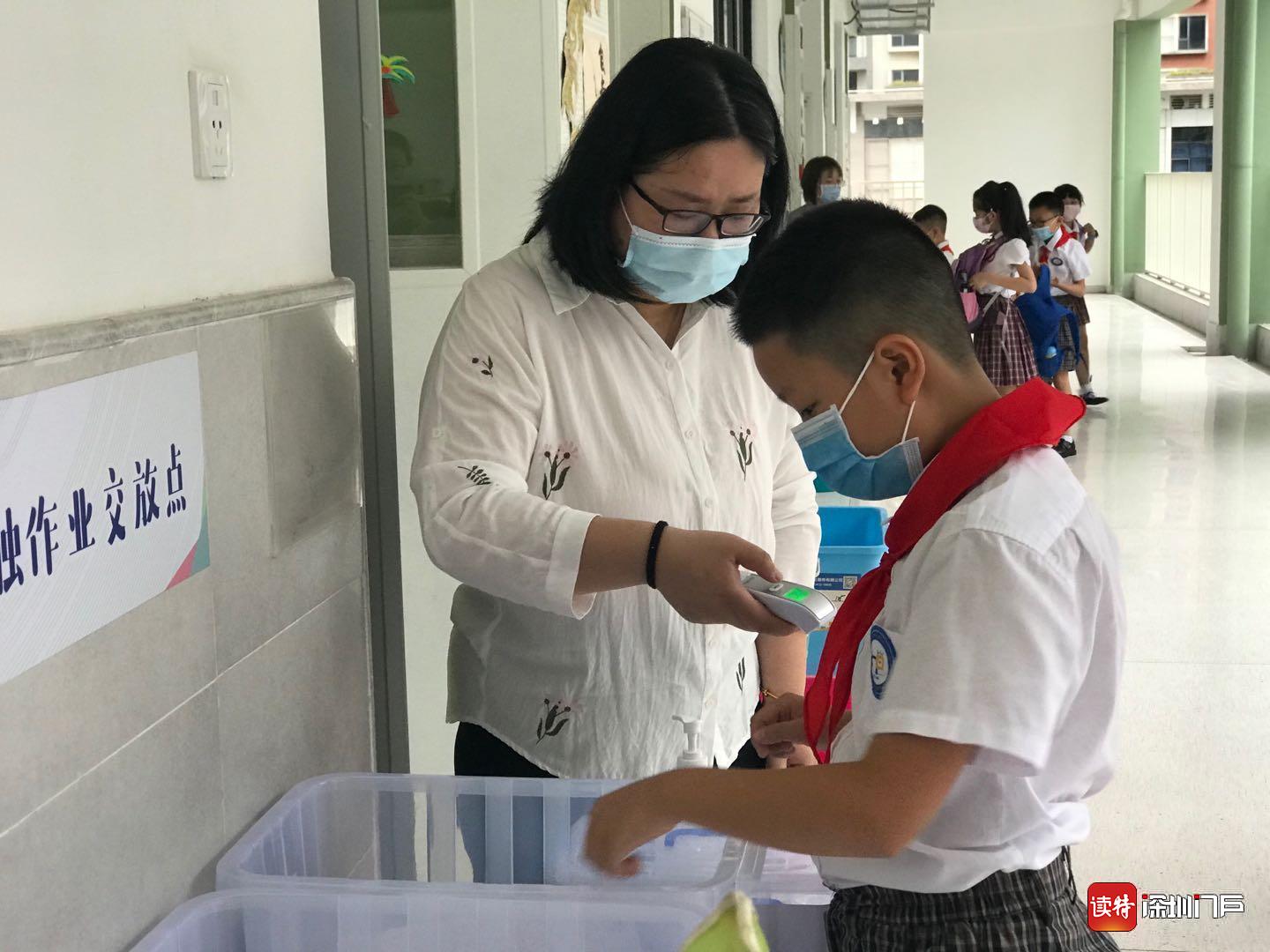 “同學們早上好!”“老師們好!”18日一大早,龍華區(qū)和平實驗小學的老師們都早早做好準備,站在學校門口,迎接孩子們歸來。在各班教室門口,學校還貼心的準備了“無接觸作業(yè)交站點”,同學們按順序自覺將學科作業(yè)放進箱內(nèi),減少了不必要的接觸。(讀特記者何亞南)